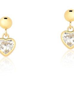 Brinco em Ouro 18k Coração Pendurado Zircônia – 08128